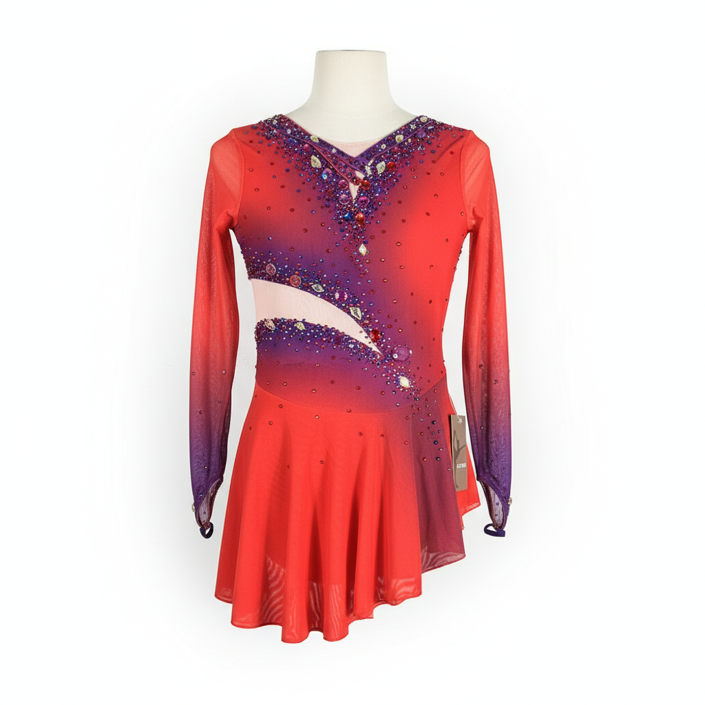 Women's Figure Skating Dress, Ombre Mesh, Red and Purple, Adult XS-XL