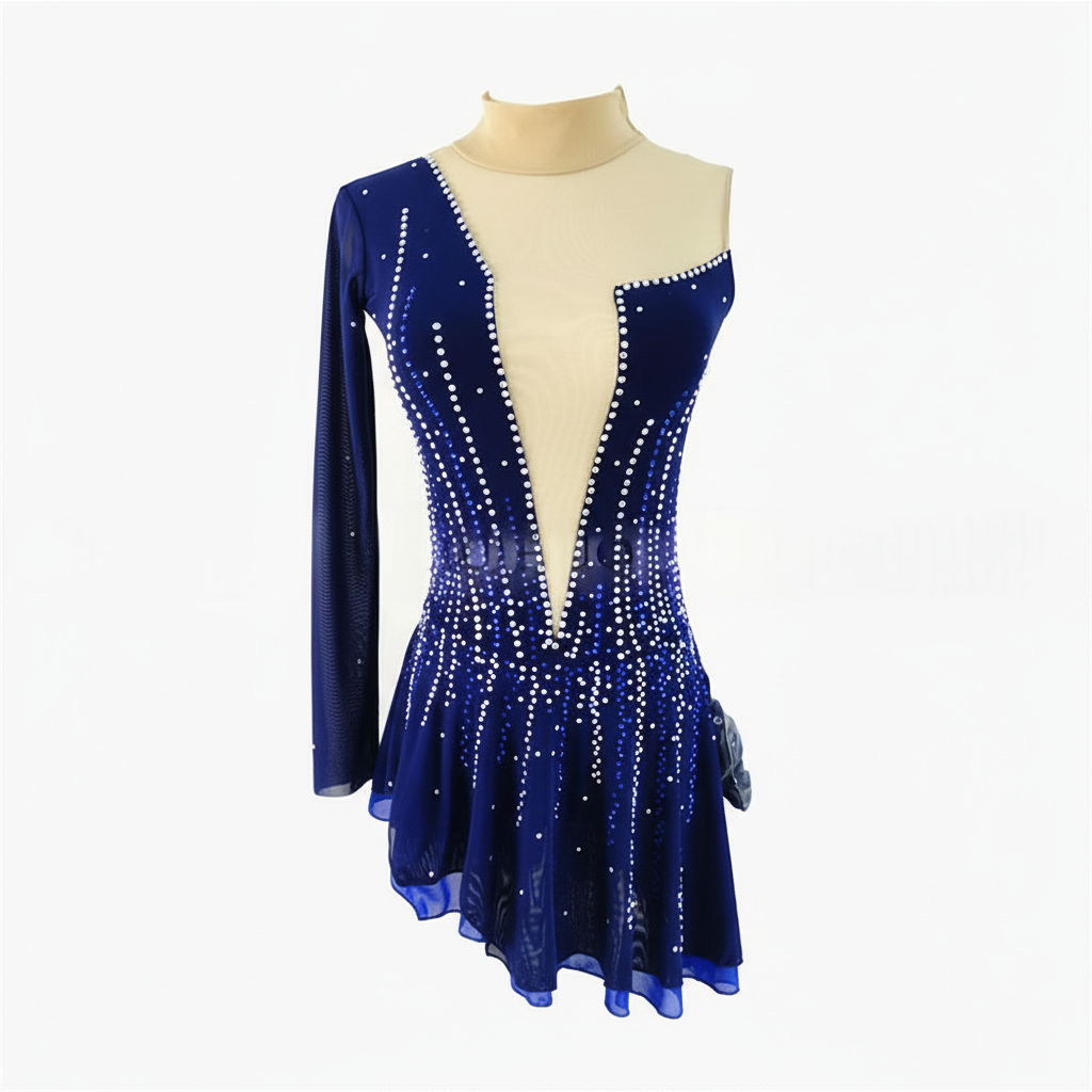 Women's Figure Skating Dress, Spandex/Mesh, Navy Blue, Adult Sizes