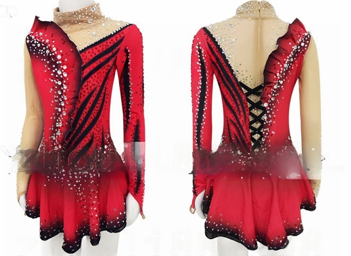 Girls Women Long Sleeve Ice Figure Skating Dress Rhythmic Gymnastics Leotard