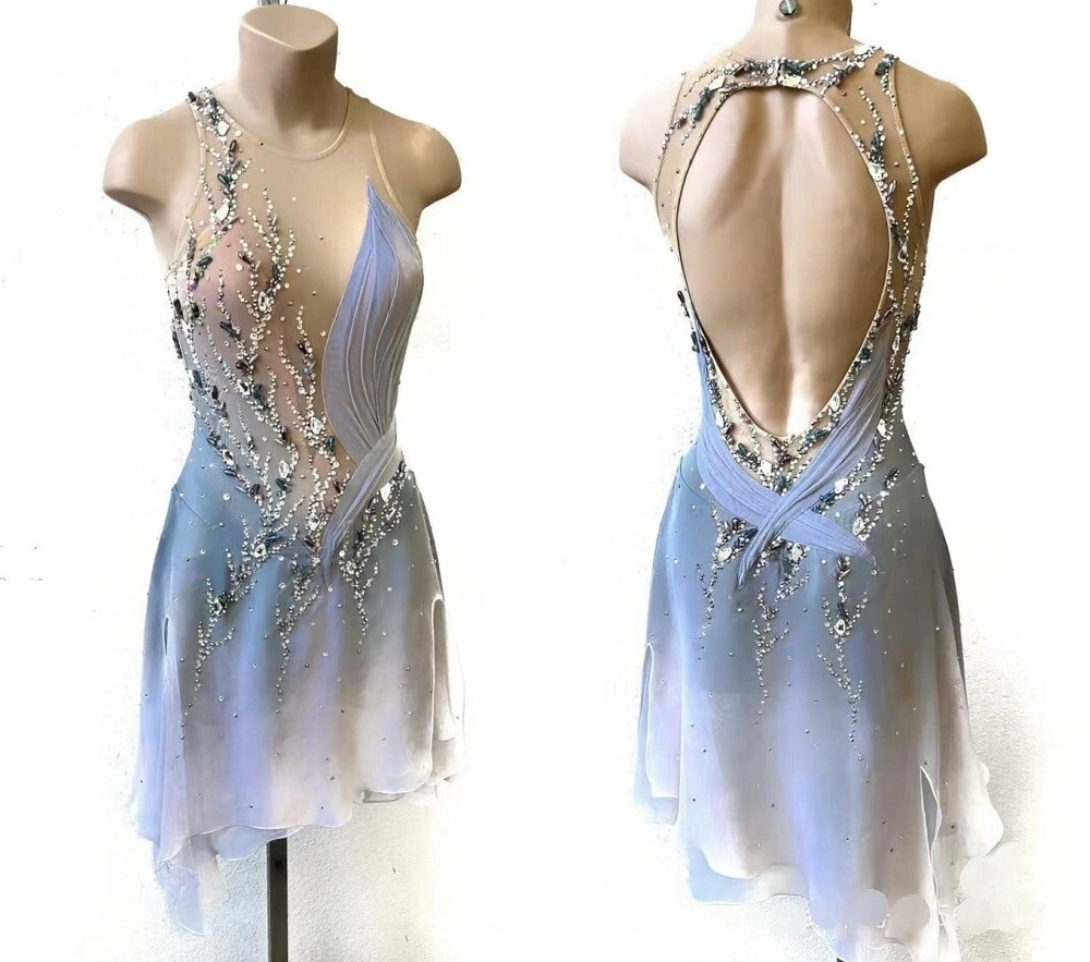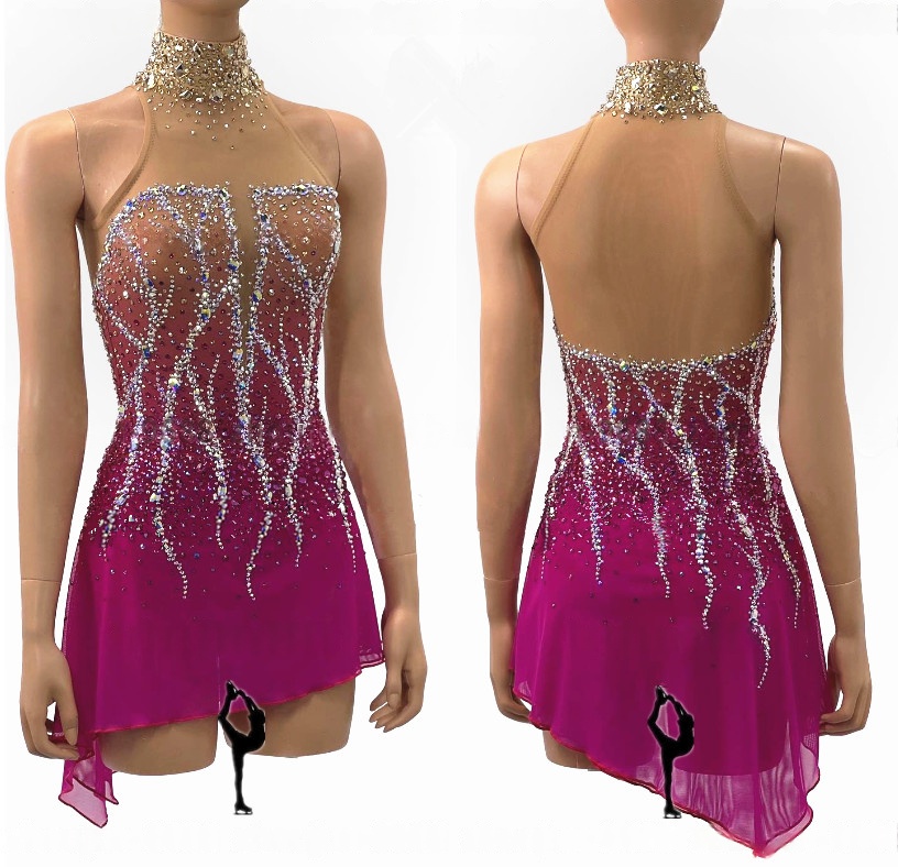 Women's Ombre Spandex Mesh Backless Halter Rhythmic Gymnastics Ice Figure Skating Dress