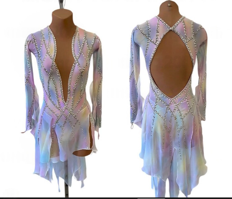 Women's Long Sleeve Open Back Ombre Crystal Rhythm Latin Dance Dress