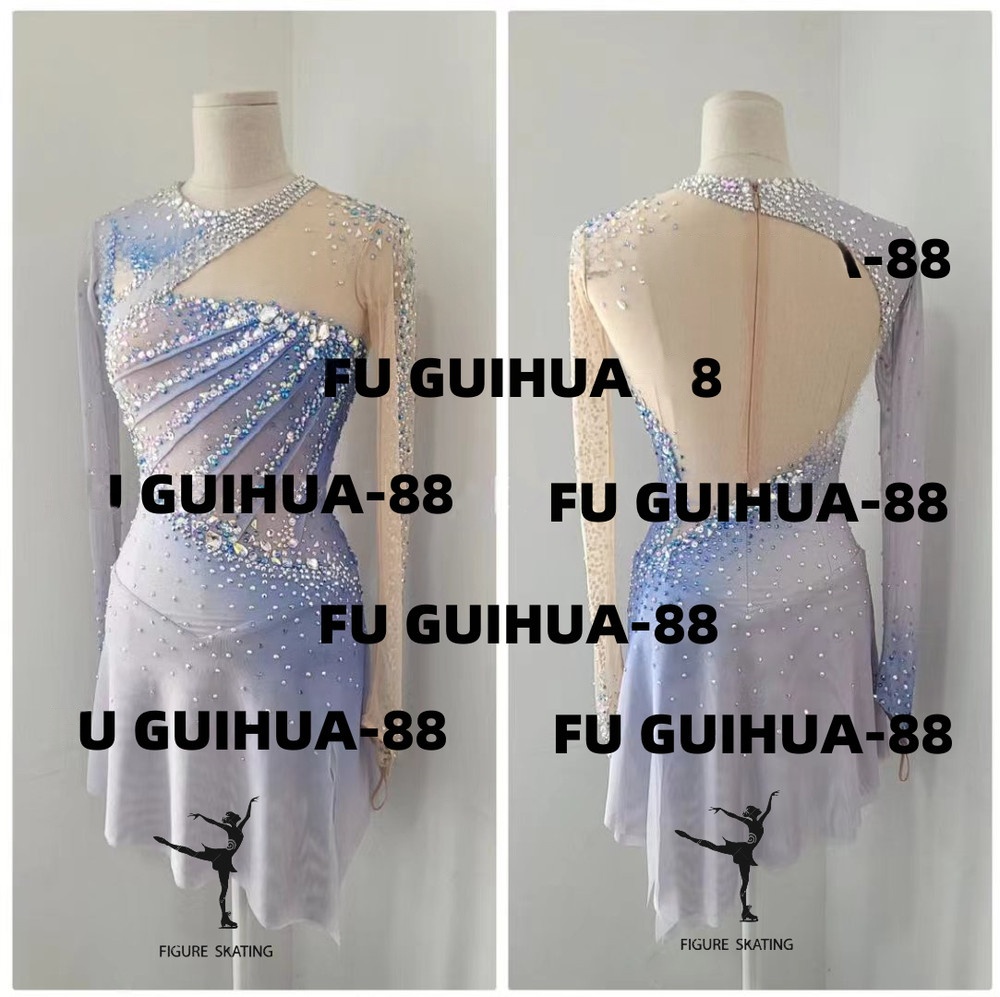 Women's Long Sleeve Mesh Spandex Figure Skating Dress with Crystal Embellishment