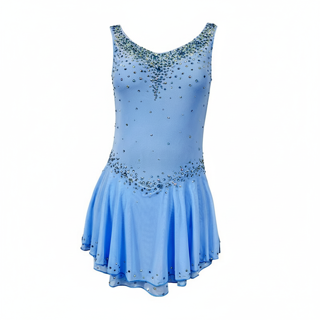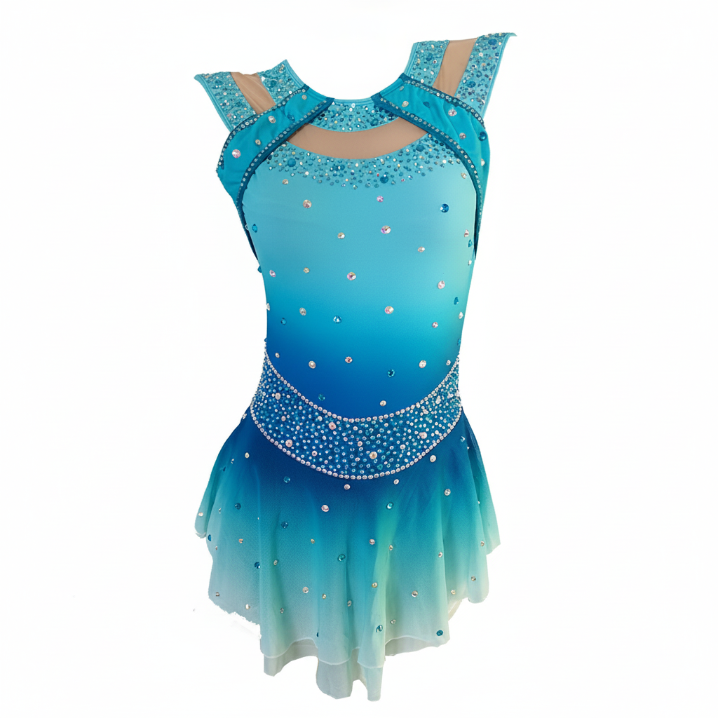Girls' Figure Skating Dress, Ombre Blue, Rhinestone Embellished, Sleeveless