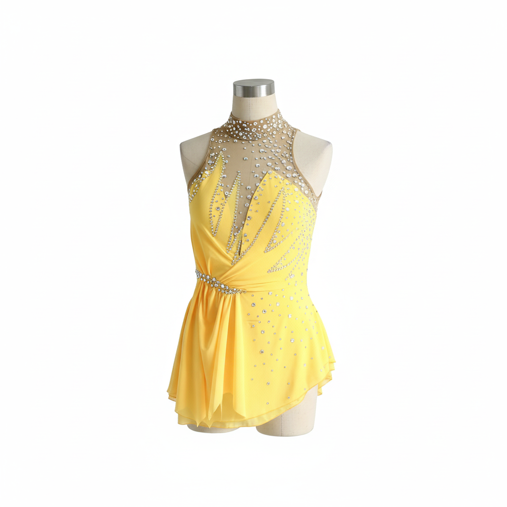 Figure Skating Dress, Spandex/Mesh, Yellow, Adult/Youth