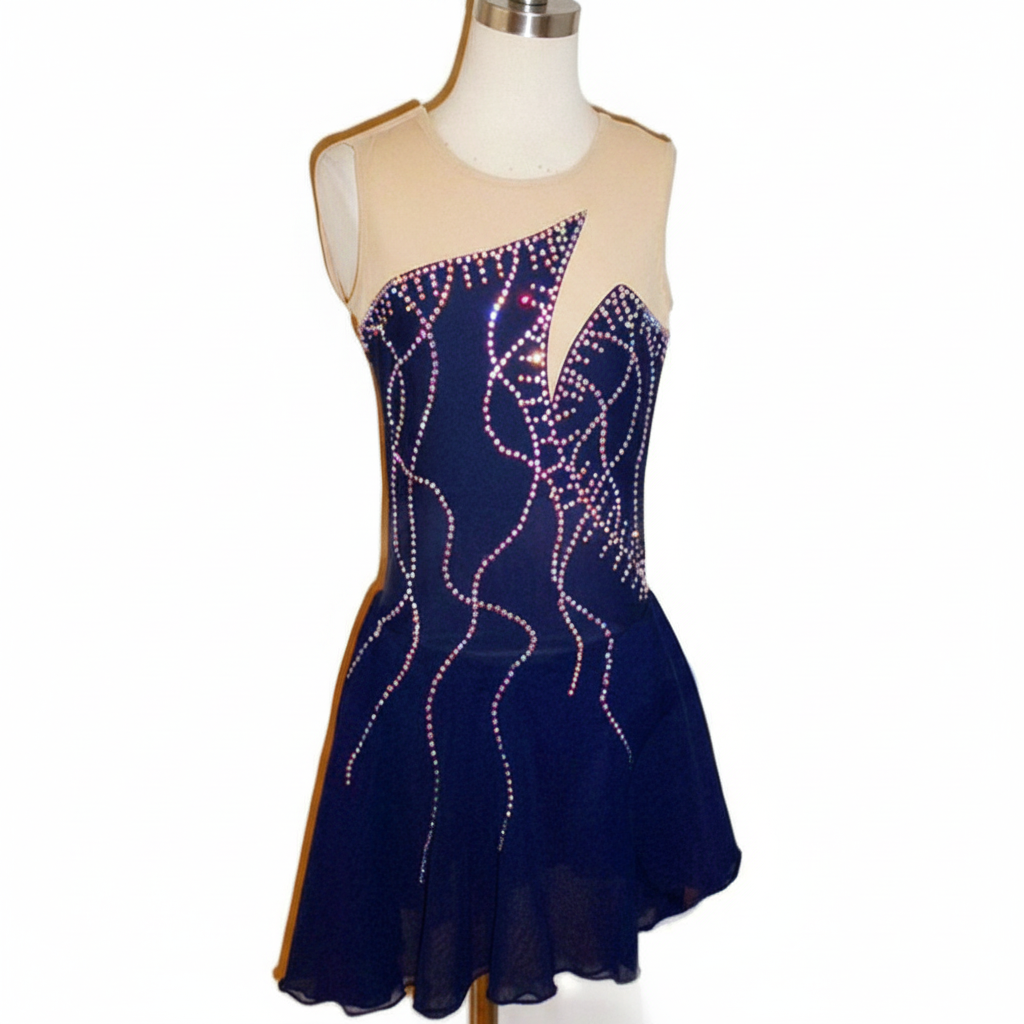 Women's Ice Skating Dress, Rhinestone Embellished, Dark Blue, Sleeveless
