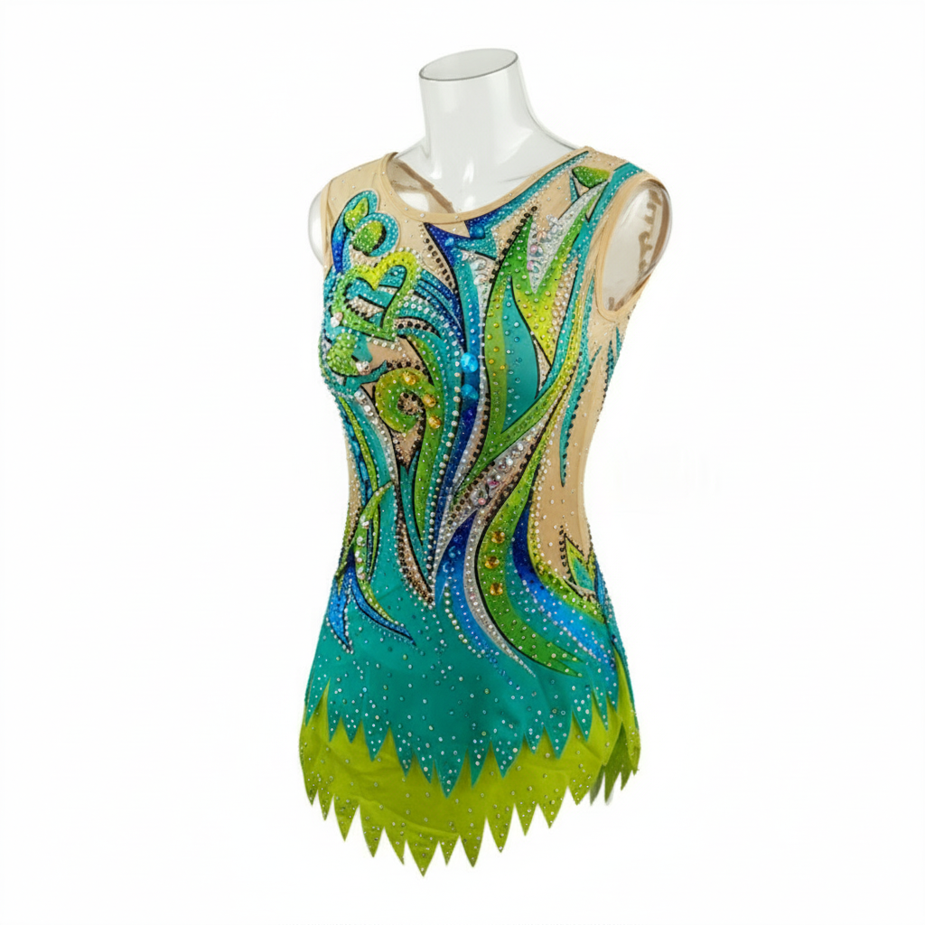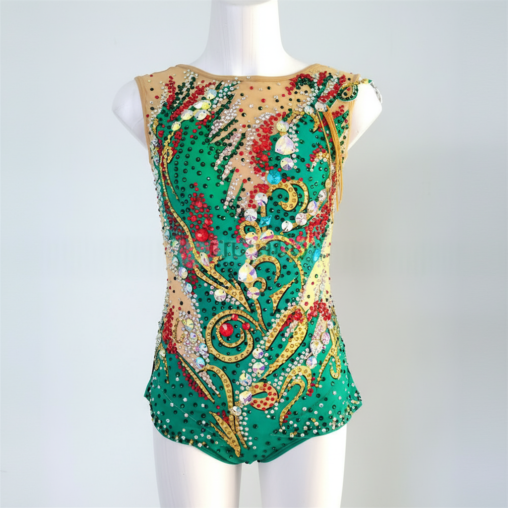 Girls Rhythmic Gymnastics Leotard, Spandex, Green, Custom Size