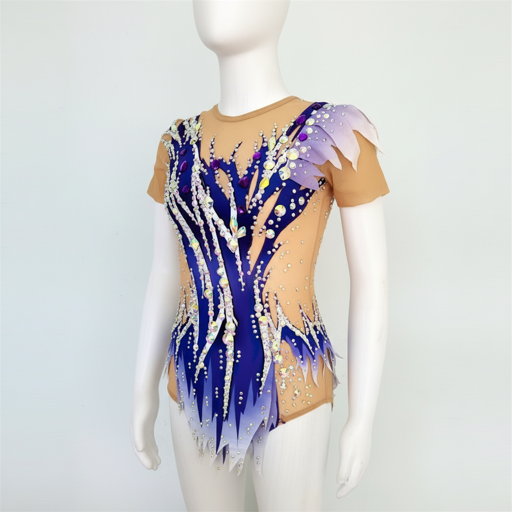 Women's Rhythmic Gymnastics Leotard, Spandex, Blue/Purple/White, Adult