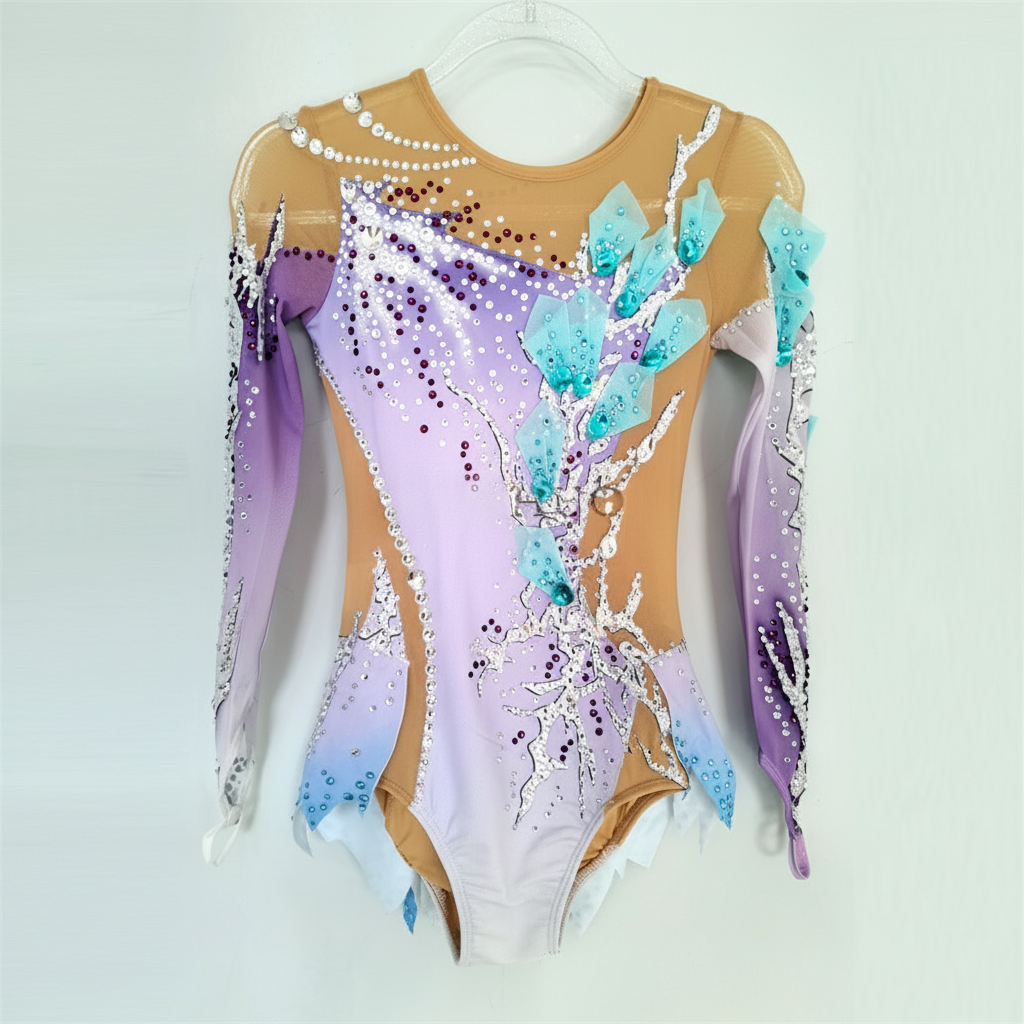 Women's Rhythmic Gymnastics Leotard, Spandex, Ombre Purple Blue, Long Sleeve