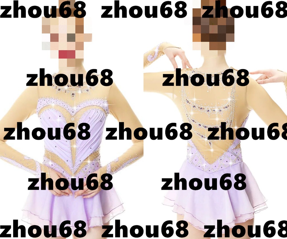 Girls Figure Skating Dress Long Sleeve Spandex Crystal Rhythmic Gymnastics Leotard
