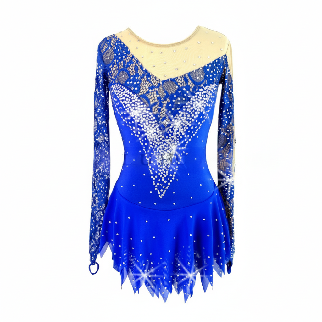 Figure Skating Dress, Spandex/Mesh, Royal Blue, Long Sleeve