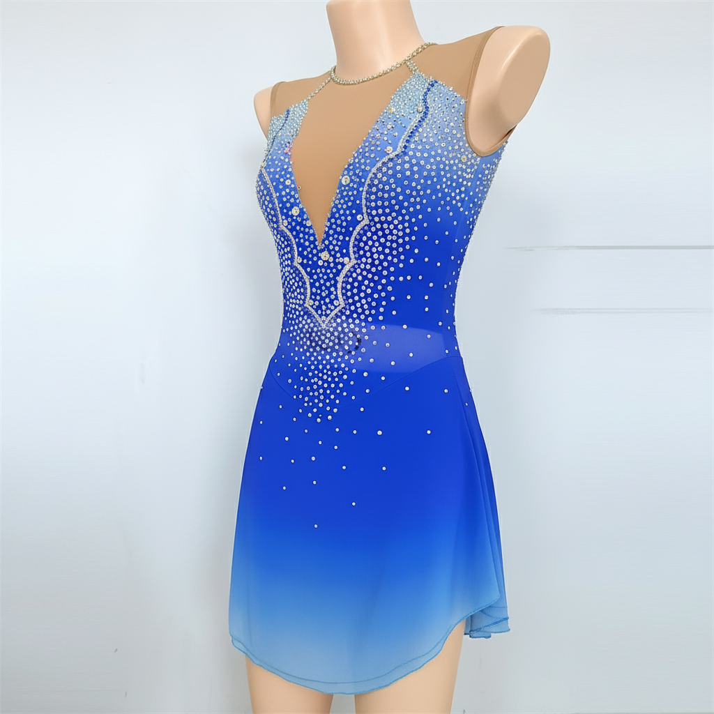 Women's Ice Skating Dress, Spandex, Royal Blue Ombre, Adult