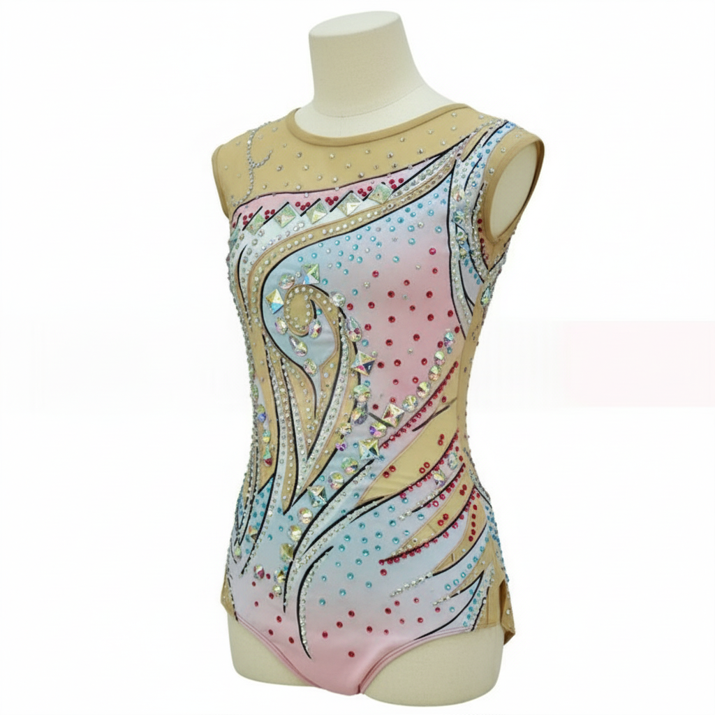 Women's Rhythmic Gymnastics Leotard Spandex Ombre Rhinestone Sleeveless