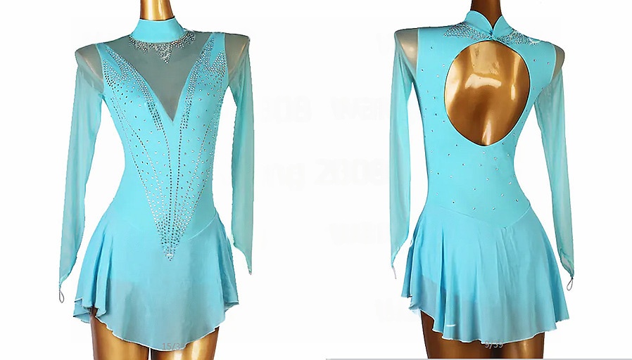 Women's Long Sleeve Spandex Mesh Crystal Figure Skating Dress