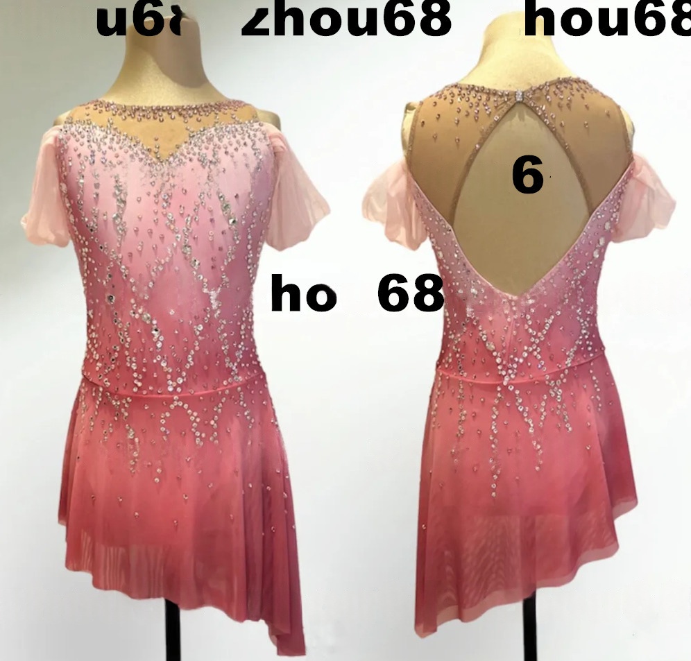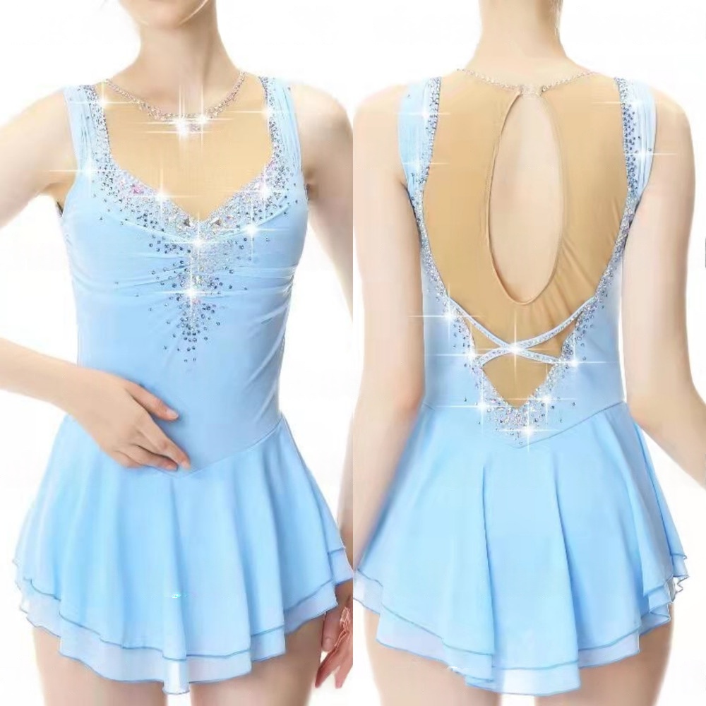 Women's Long Sleeve Mesh Spandex Crystal Figure Skating Dress