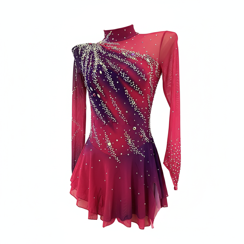 Women's Figure Skating Dress, Ombre Mesh, Rhinestone Embellished, Long Sleeve