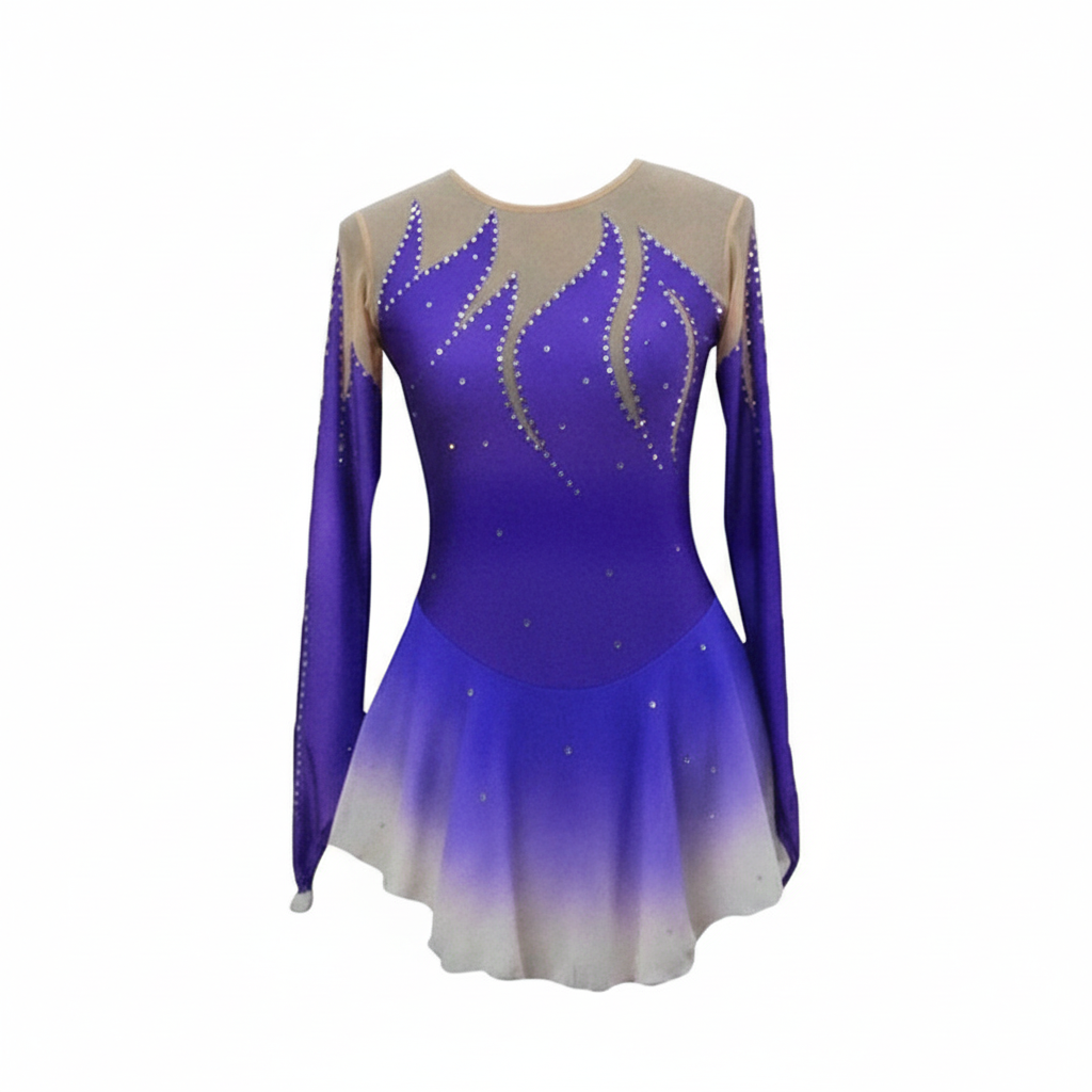 Women's Figure Skating Dress, Ombre Tulle, White Purple, Rhinestone Embellished