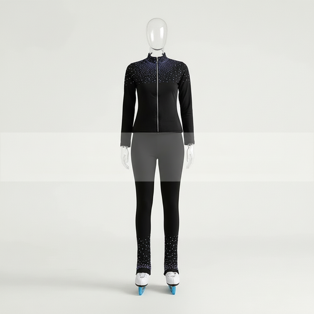Women's Figure Skating Jacket and Leggings Set, Black, Rhinestone Embellished
