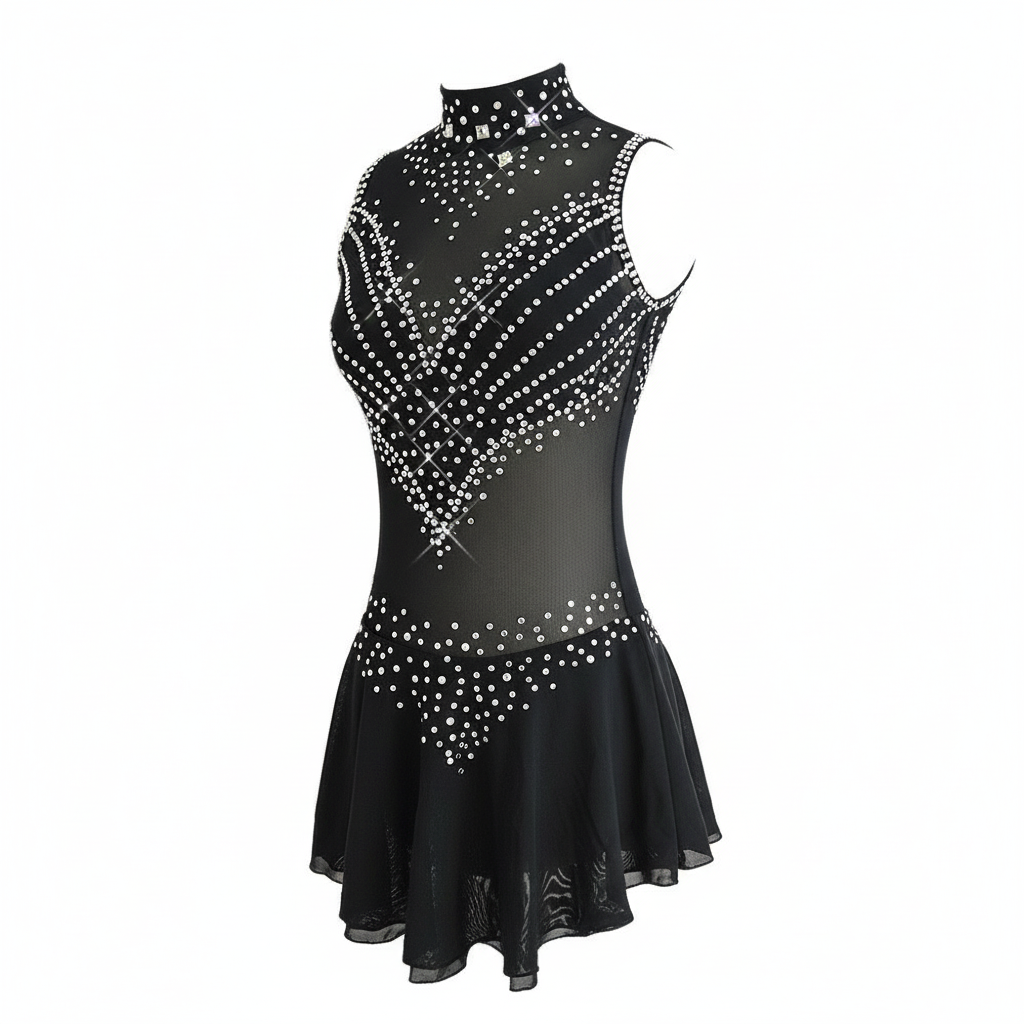 Women's Ballroom Dance Dress, Rhinestone Embellished, Black, Sleeveless