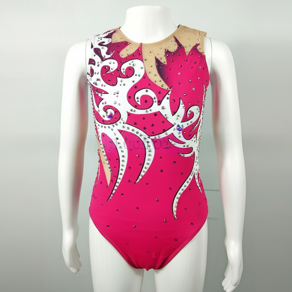 Girls Rhythmic Gymnastics Leotard, Sleeveless, Rhinestone, Pink, Size M