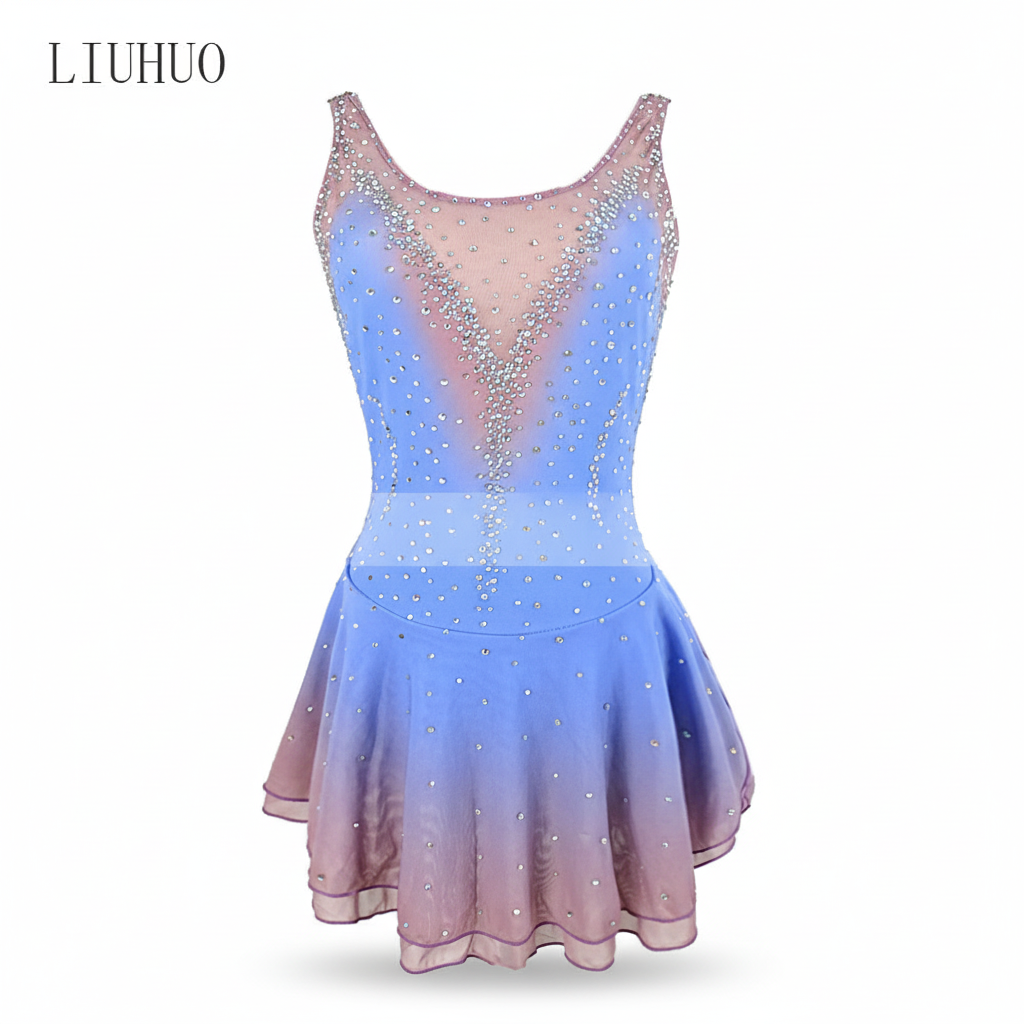 Women's Figure Skating Dress, Ombre Blue Purple, Rhinestone Embellished