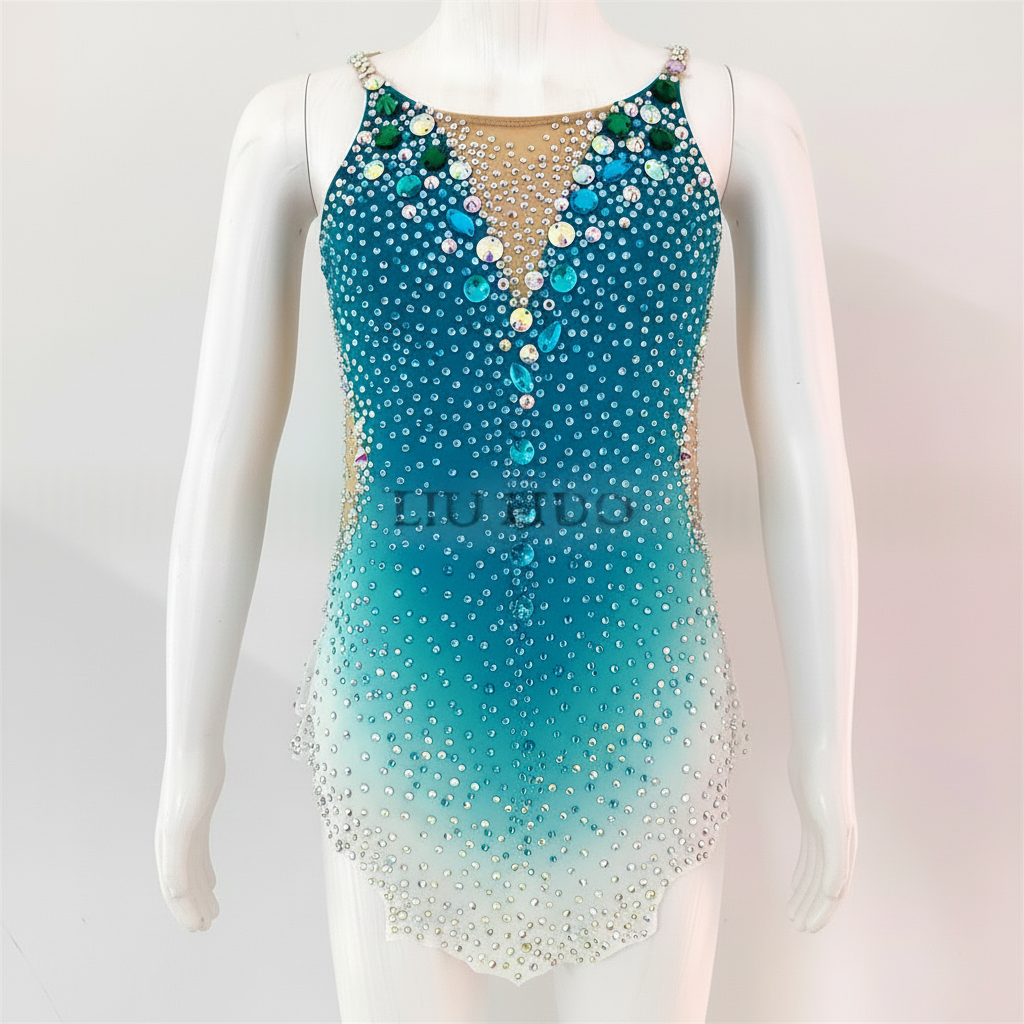 Women's Rhythmic Gymnastics Leotard Spandex Ombre Rhinestone Sleeveless