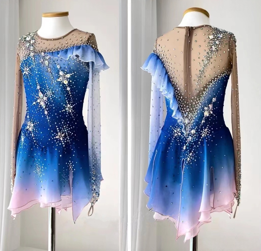 Specifically engineered for figure skating competitions and performances, this dress combines high-performance functionality with breathtaking aesthetics. It is ideal for skaters seeking a garment that supports athletic demands while exuding elegance and capturing attention.