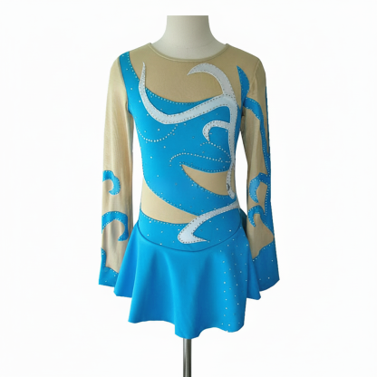 This girls' rhythmic gymnastics leotard features long sleeves and a striking blue/white color combination, designed in a small size to ensure a comfortable and flexible fit during performances. Made for ease of movement, it's ideal for gymnastics routines, with care instructions that promise hassle-free maintenance.