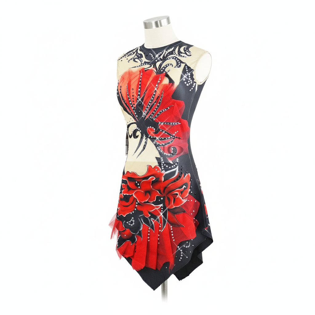 This elegant rhinestone sleeveless dress features an eye-catching asymmetrical hem in bold red and black, perfect for formal occasions. The fabric provides a comfortable fit, ensuring you look your best while being easy to care for.