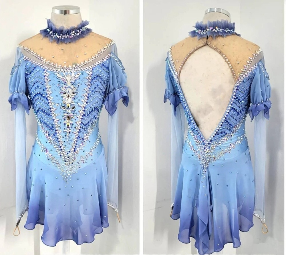 Crafted from a blend of stretch mesh and lycra, the dress offers exceptional flexibility and breathability, ensuring optimal performance and comfort on the ice.