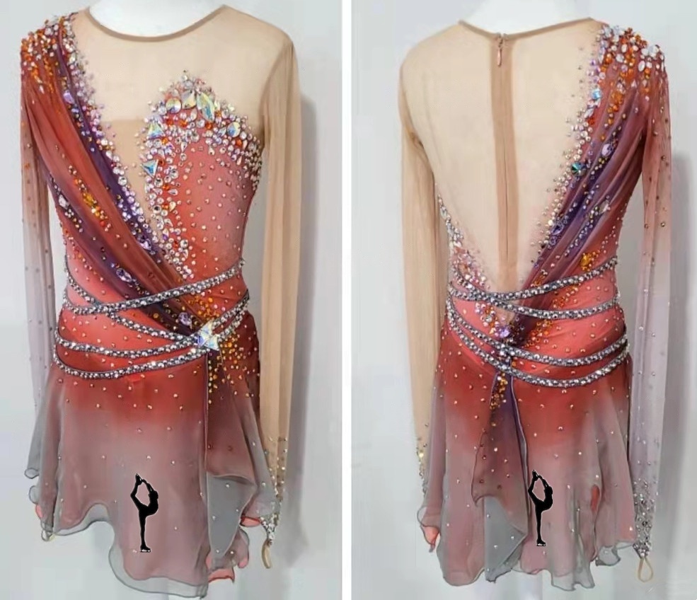Designed specifically for rhythmic gymnastics and figure skating, this leotard offers both aesthetic brilliance and functional performance. The flared skirt allows for dynamic expression, making it perfect for competitive performances and captivating audiences.