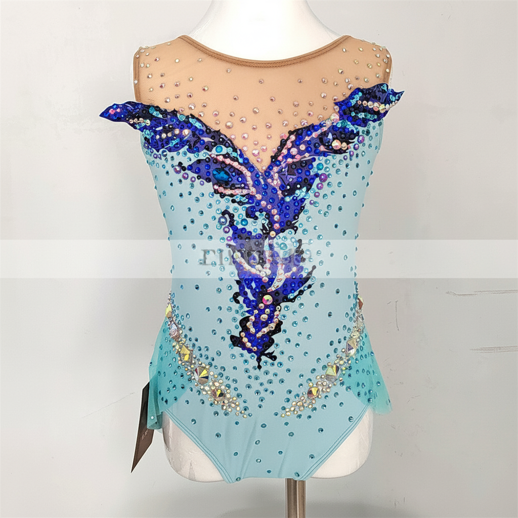 Experience elegance and flexibility with this Women's Rhythmic Gymnastics Leotard in blue. Made from a breathable mesh fabric, it offers a sleek fit and excellent stretch for enhanced movement, making it perfect for performances or practice sessions. Easy to care for, ensuring durability and lasting comfort.