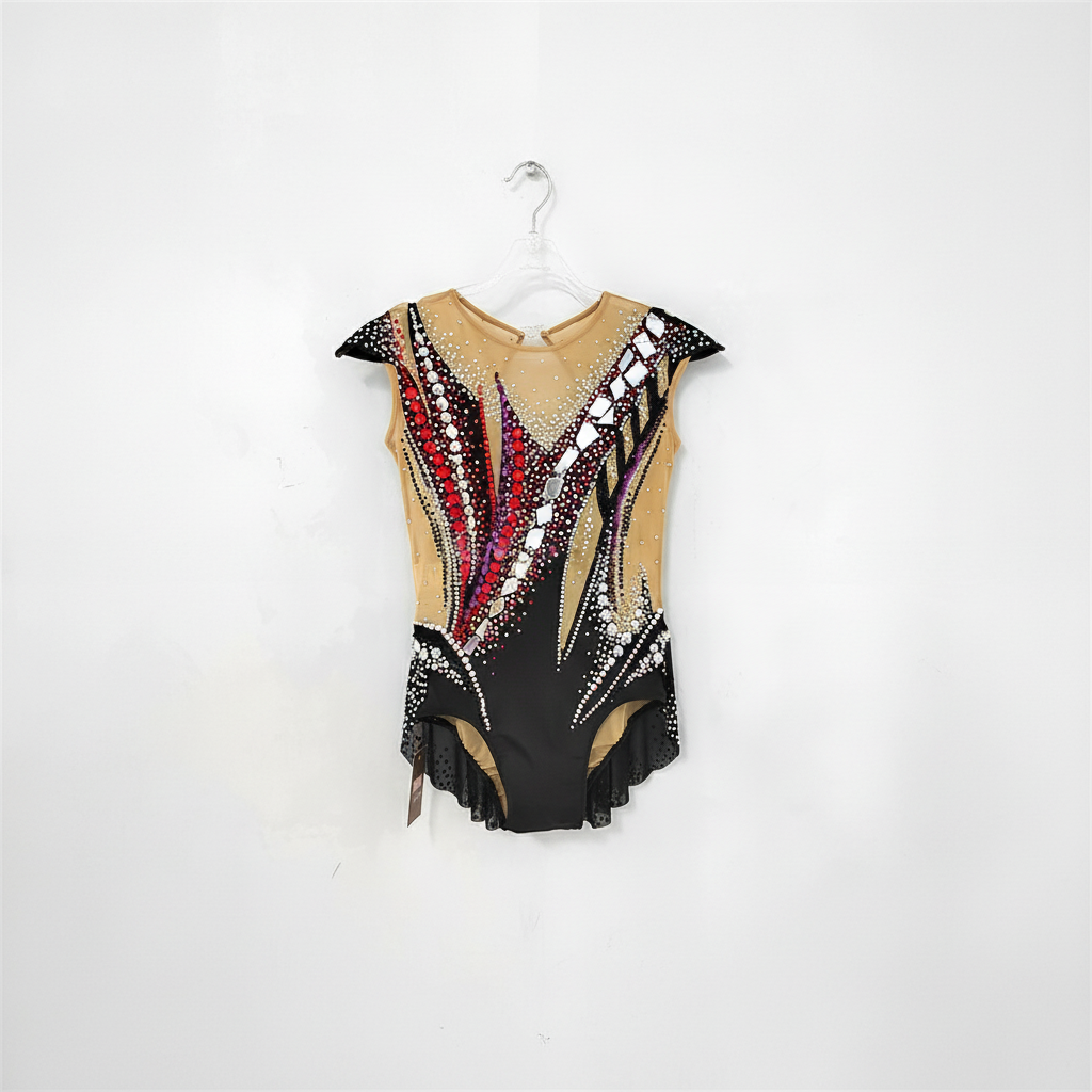 This women's rhythmic gymnastics leotard combines form-fitting spandex and mesh for a sleek black and red design that ensures both style and flexibility. Ideal for performances and practice, this leotard offers excellent stretch and ease of movement while being simple to care for, hand wash recommended.
