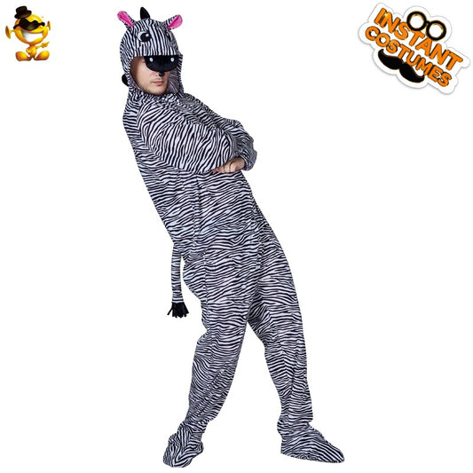 Costume zèbre amusant pour homme, combinaison pour Halloween, fête animalière, spectacle sur scène, cosplay