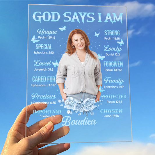 Dieu dit « Je suis » - Plaque acrylique personnalisée - Cadeau pour elle et lui