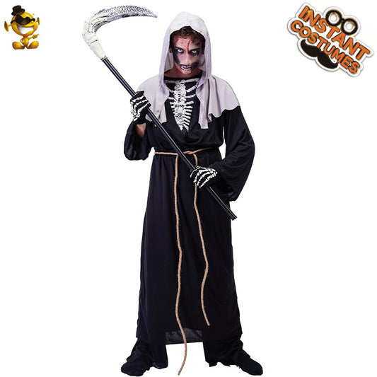 Costume de cosplay squelette de la Faucheuse pour homme adulte d'Halloween pour fêtes et représentations sur scène
