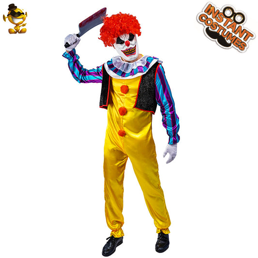 Costume de clown effrayant pour homme adulte Halloween, combinaison complète, tenue de cosplay de bouffon d'horreur