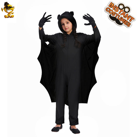 Body chauve-souris noir d'Halloween pour enfants, costume de scène, tenue de fête