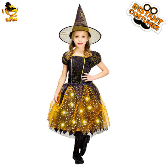 Costume de sorcière lumineuse pour enfants d'Halloween, idéal pour une fête ou une représentation sur scène