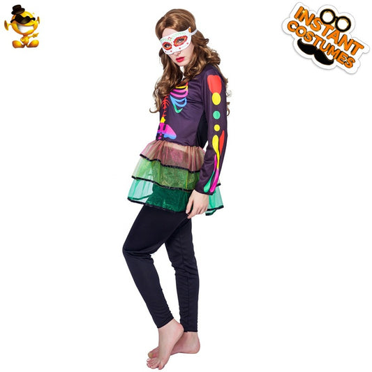 Costume d'Halloween pour femme, robe squelette, tenue de fête gothique cosplay