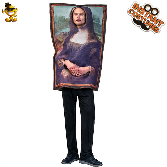 Costume d'Halloween pour adultes, drôle, peinture de Mona Lisa, coiffe, tenue de fête cosplay