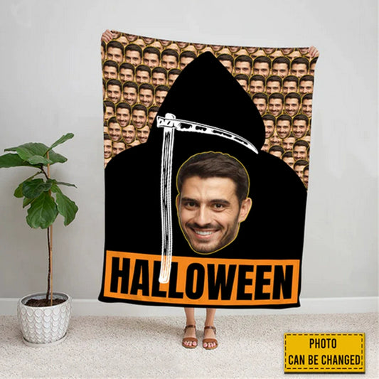 Couverture photo personnalisée en polaire humoristique avec motif de mort pour Halloween
