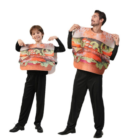 Costume de hamburger familial d'Halloween, tenue de scène, cosplay, frites, robe de jeu de rôle