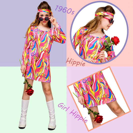 Déguisement enfant années 70-80 fleuri hippie disco groovy pour Halloween et cosplay