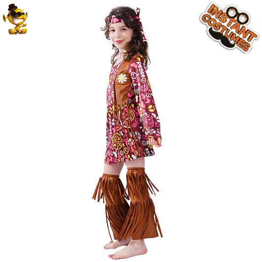 Robe rétro hippie pour femme, costume de scène, tenue de cosplay, tenue de fête