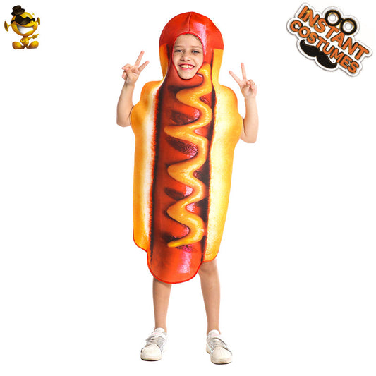 Costume de hot-dog d'Halloween pour enfants, tenue de cosplay amusante pour fêtes costumées