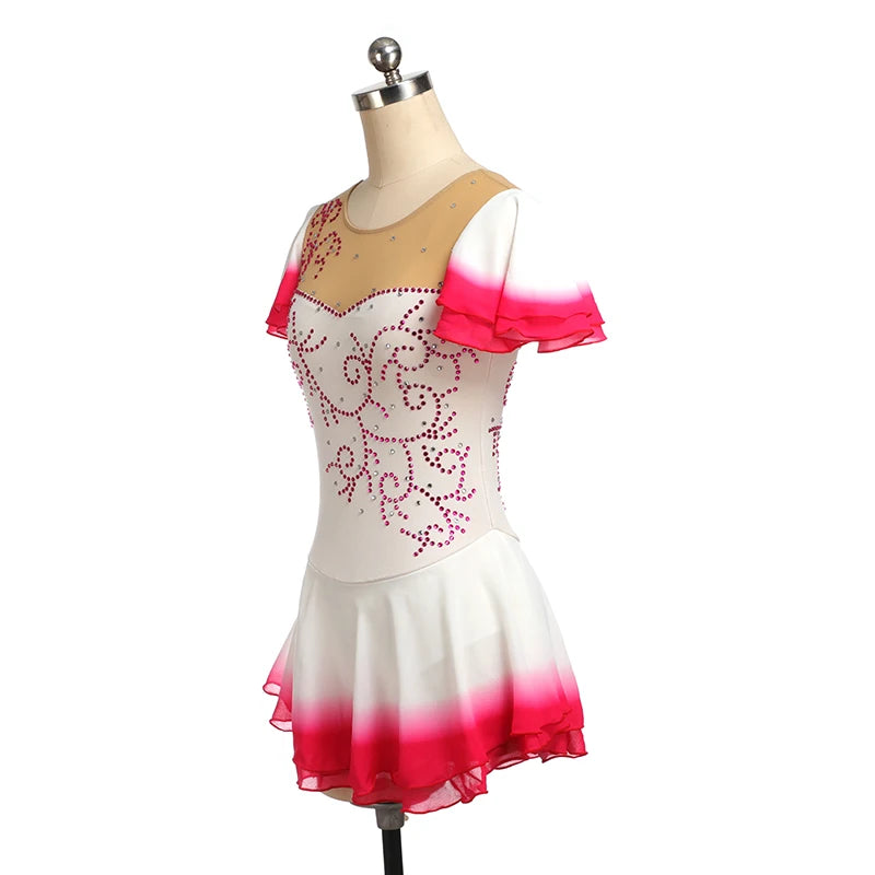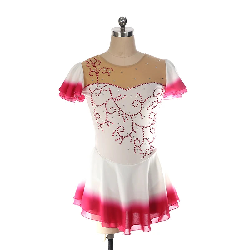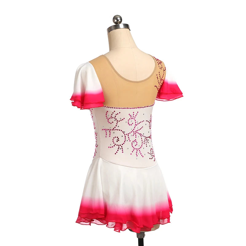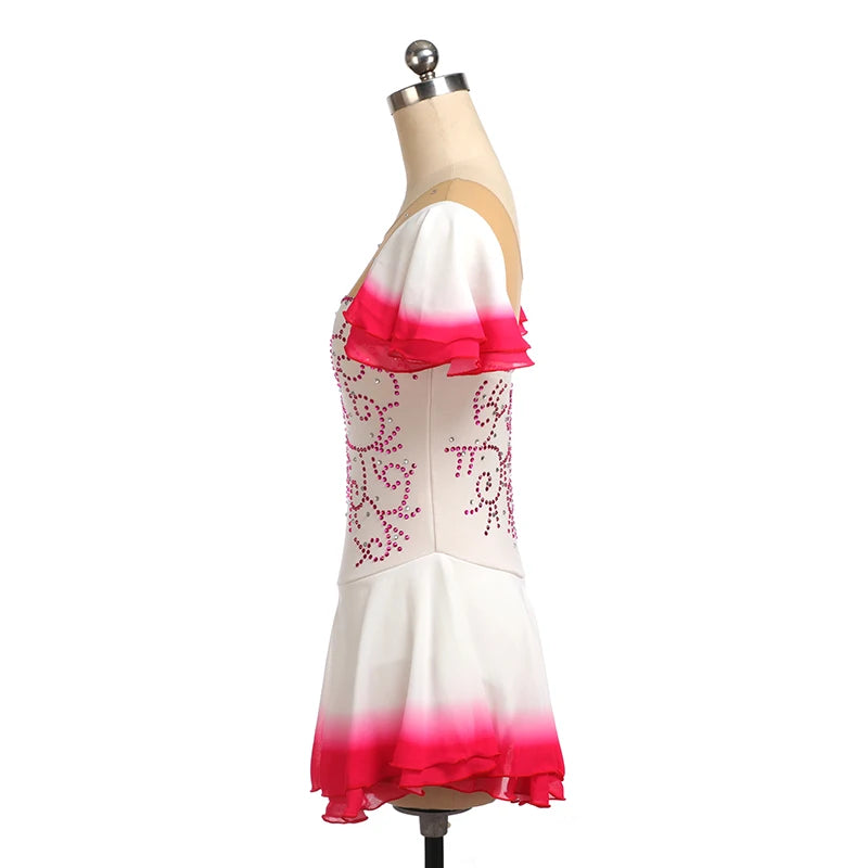 Designed for figure skating competitions, training, and rhythmic gymnastics, this short-sleeve dress showcases a white-to-pink gradient and a streamlined athletic fit cut from soft, breathable, high-stretch performance fabric that moves with you. Quick-drying and easy to care for, it offers comfortable coverage without bulk for practice or performance; hand wash cold and line dry.