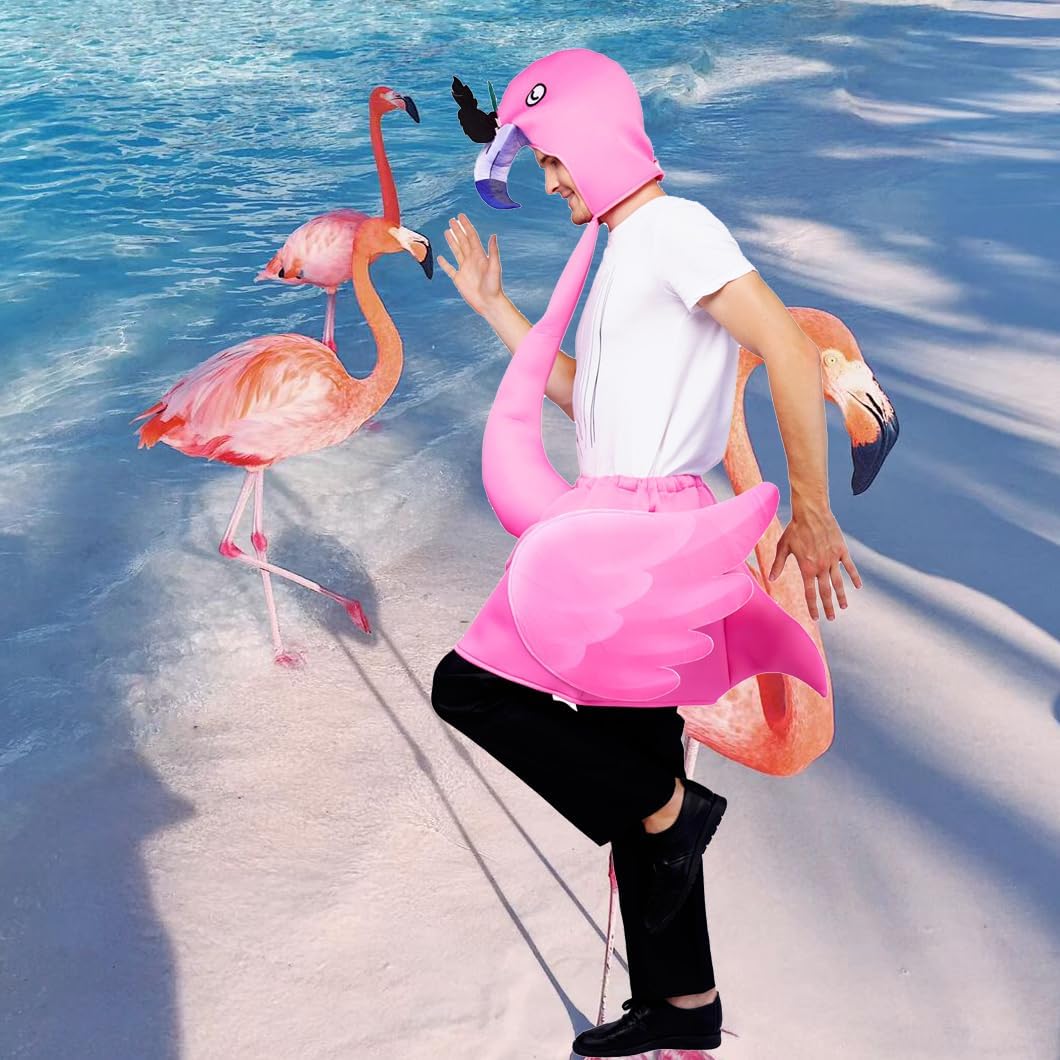 Ce costume de flamant rose éclatant est parfait pour Halloween, les événements cosplay ou les soirées à thème. Taille unique, il comprend une combinaison intégrale avec capuche intégrée pour un look complet. Fabriqué en polyester léger pour un confort optimal même en cas de port prolongé.
