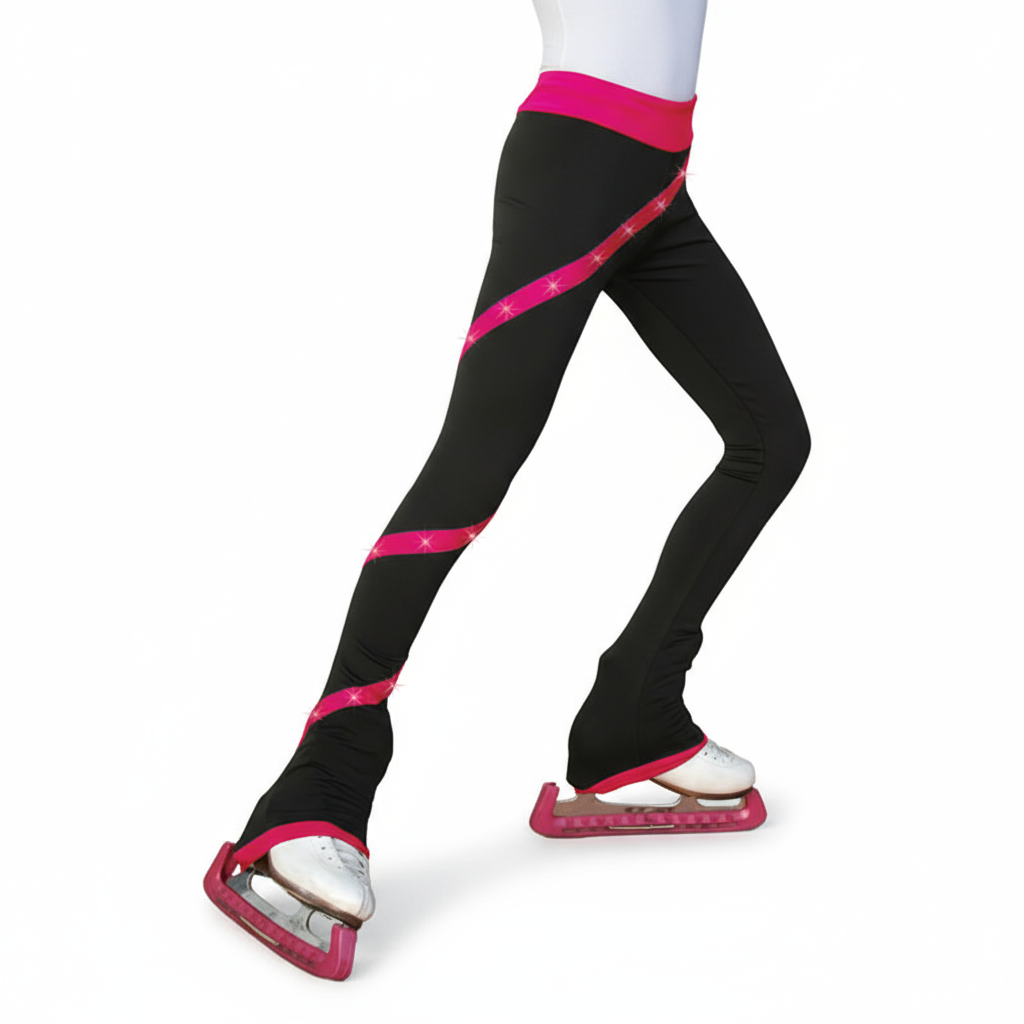 Designed for figure skating and artistic gymnastics, these women’s slim-fit training pants use lightweight polyester with a soft fleece backing to deliver gentle warmth without bulk and a smooth, streamlined look. A high, stay-put waistband and four-way stretch allow full range of motion and a secure fit, while the easy-care fabric resists pilling, wicks moisture, and washes cold for lasting performance.