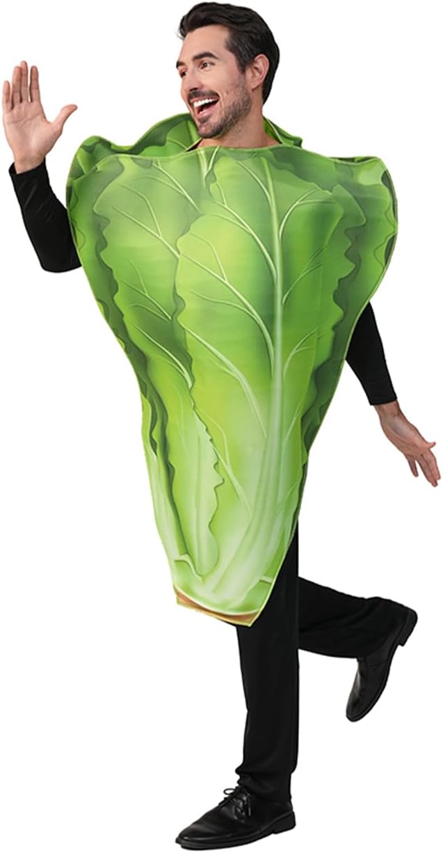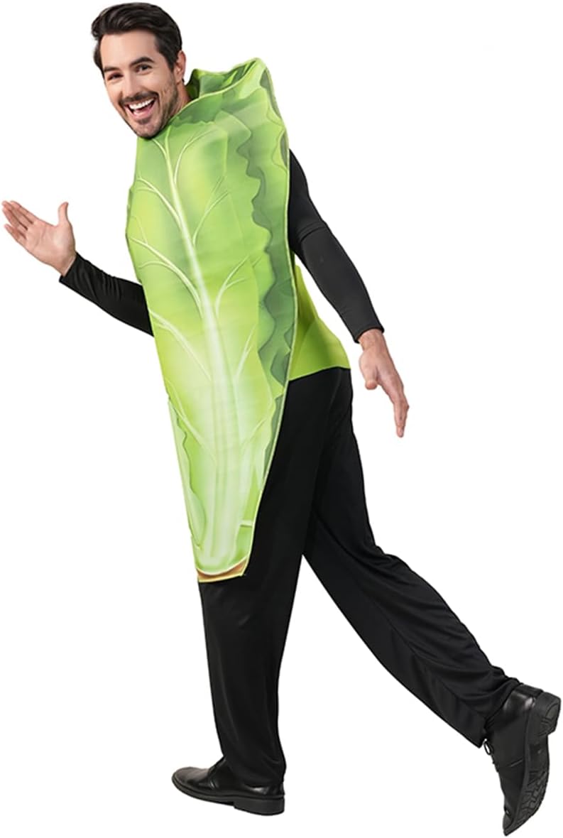 Ce costume de laitue amusant et coloré est parfait pour Halloween, les événements cosplay ou les soirées à thème. Fabriqué en polyester doux et léger pour un confort optimal, il présente une coupe intégrale avec des détails réalistes de feuilles de laitue.