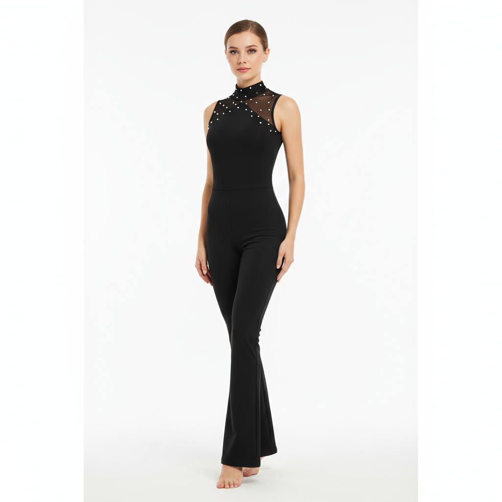 This sleeveless figure skating jumpsuit for women and kids pairs a streamlined tights-style silhouette with soft, resilient 4-way stretch fabric, available in blue, red, or black for a clean, professional look on the ice. Designed for practice and performance, it offers flexible compression and full mobility, dries quickly, and is easy to care for—wash cold, hang to dry—for lasting comfort and coverage.